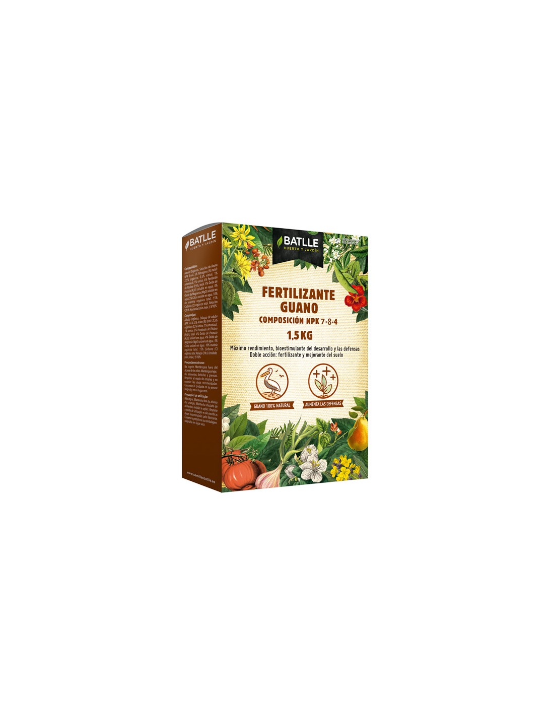 El fertilizante Guano BATLLE es un complejo granulado nutritivo de origen natural que favorece un crecimiento, desarrollo y floración equilibrados al mismo tiempo que estimulamos las defensas naturales de las plantas, creciendo más fuertes y sanas.