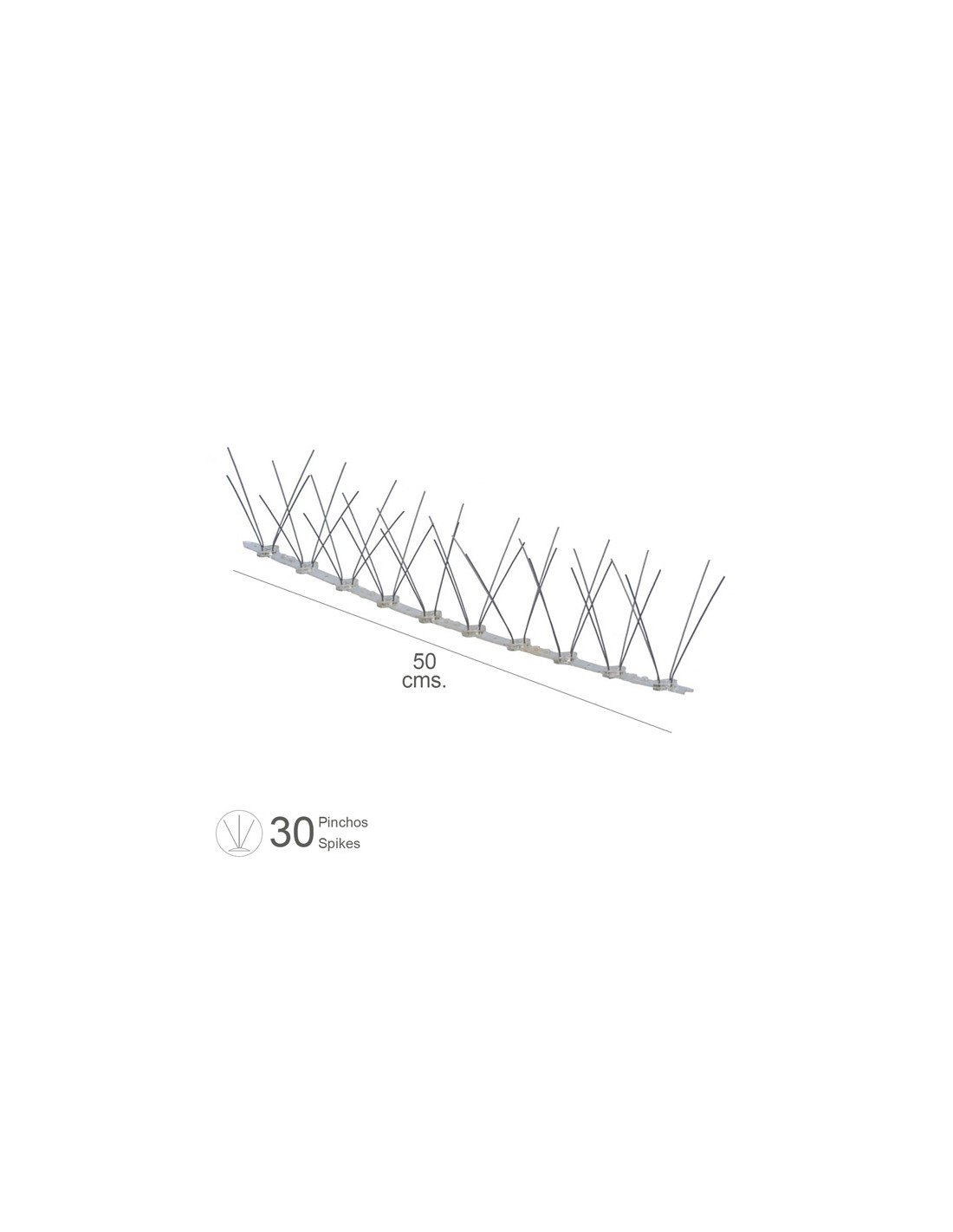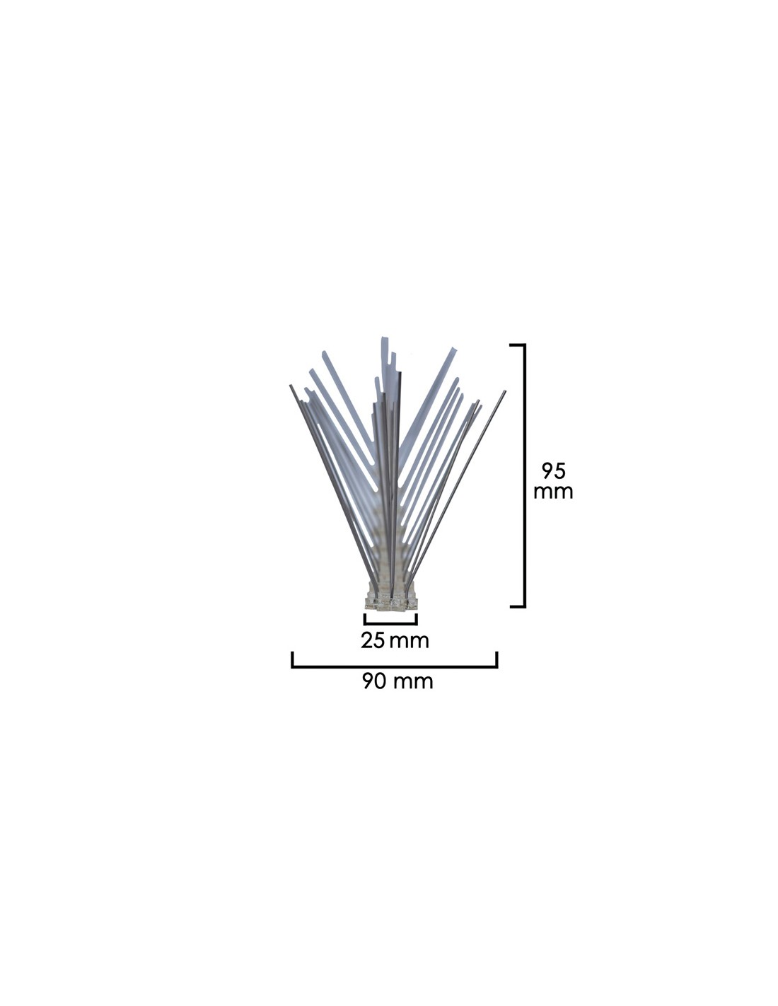 Protectores anti-aves con pinchos para evitar que palomas y otras aves se posen en cornisas, tejados o ventanas. Sistemas con doble pincho fabricado con base de polietileno, pinchos acero inoxidable.