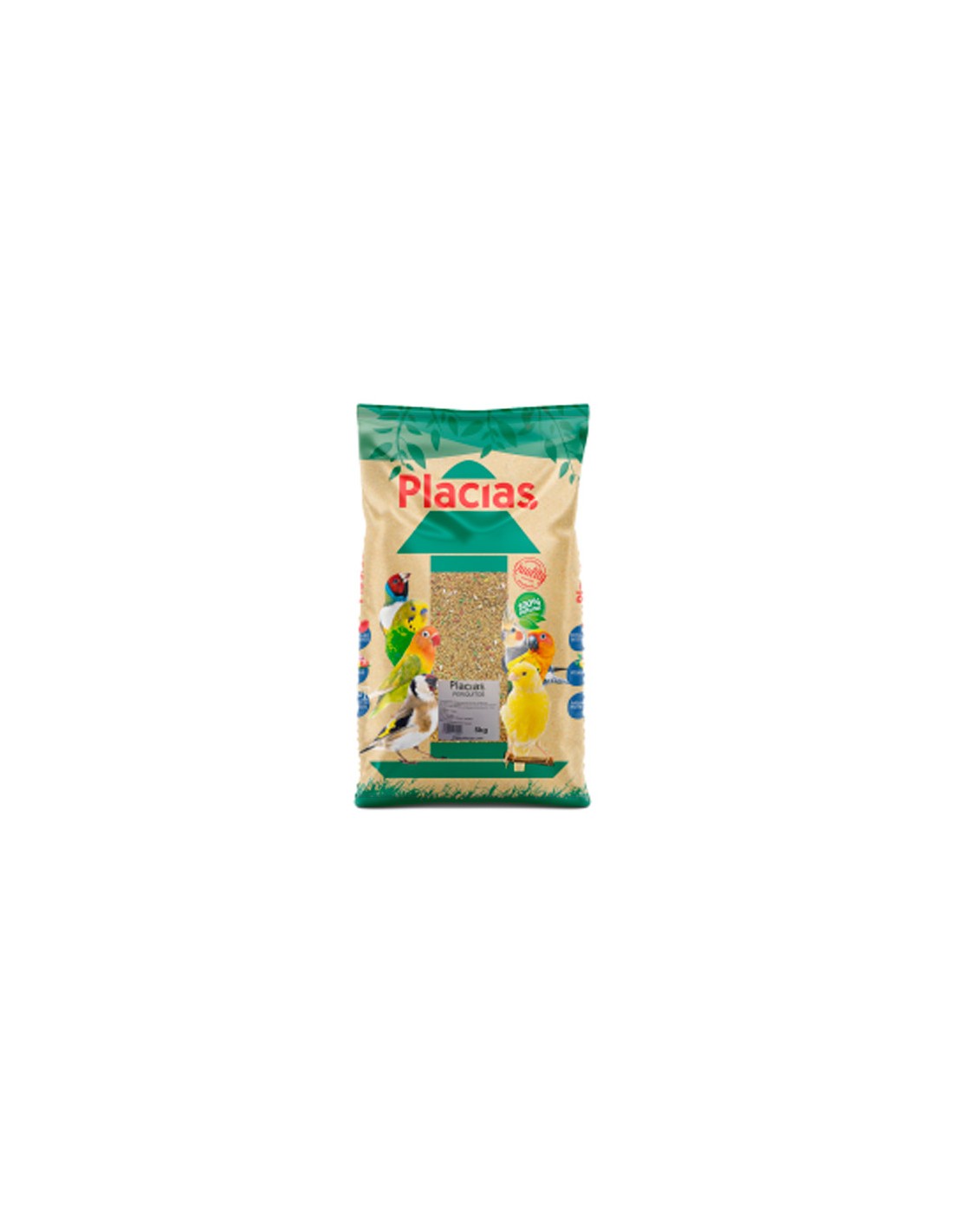 Alpiste para periquitos marca Placias, 5kg. Alimentación completa para periquitos formulada con mixtura de Mijo amarillo, mijo rojo, avena, panecillo y gránulos vitaminados.