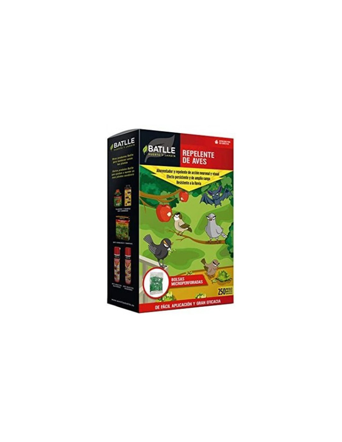 Repelente de Aves BATLLE es un repelente y ahuyentador de aves de larga duración y resistente a la lluvia, que actúa afectando el sistema nervioso y visual de aves como aves urbanas, del campo y de la huerta.