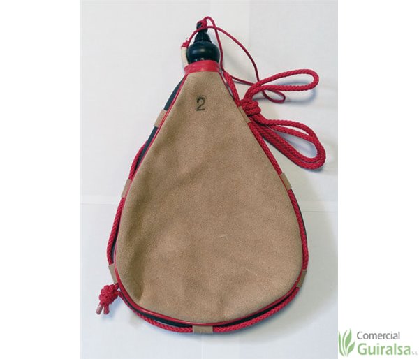 Bota de vino artesanal de serraje (piel de toro) e interior con cámara de látex para almacenar todo tipo de bebidas, con cordón y broncal de polietileno. Disponible en capacidades de 1, 1,5 y 2 litros.