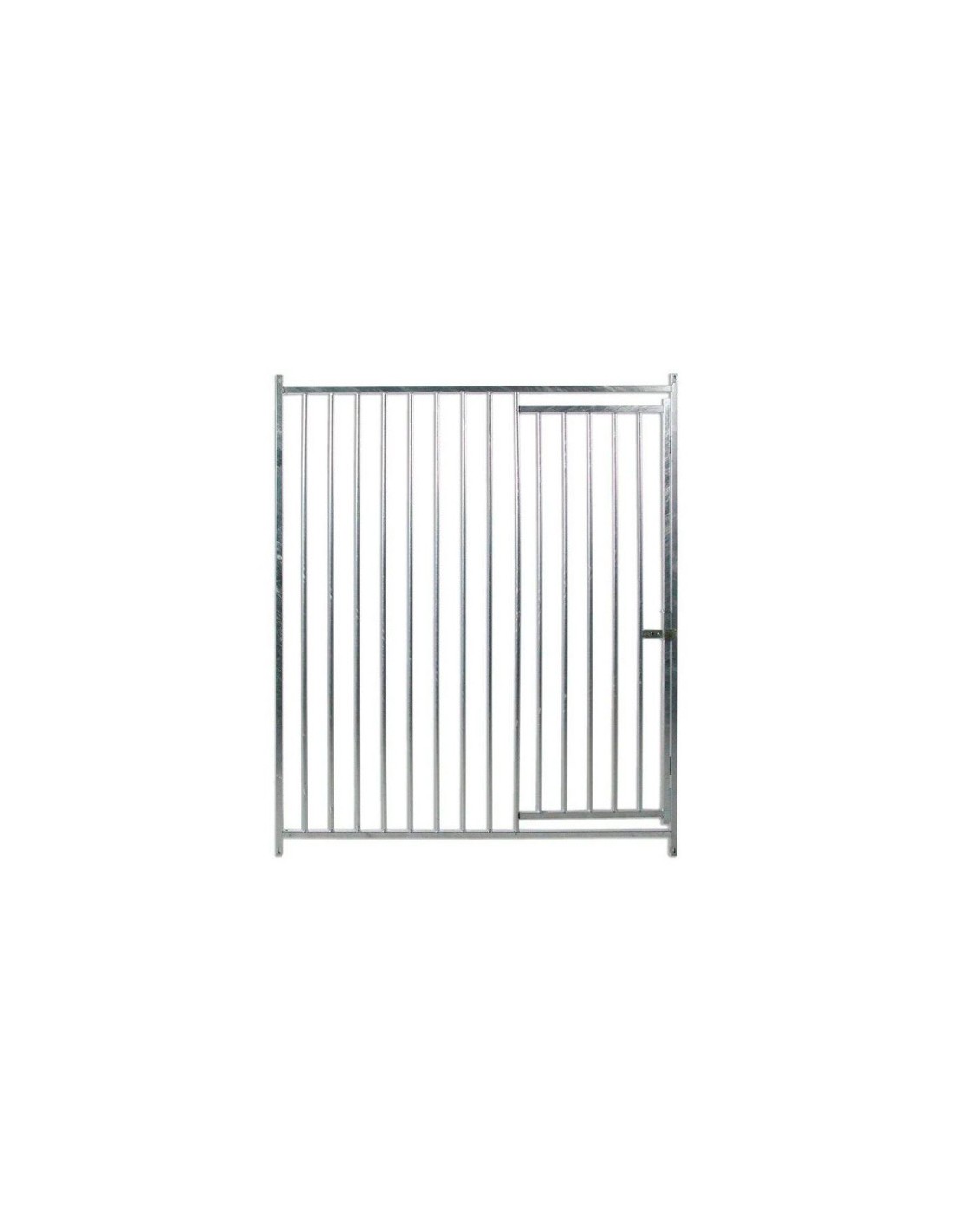 Frente de Box para Perros con Puerta y barras de 8cm de separación para perros medianos y grandes. Panel frontal para boxes de perros fabricado en acero galvanizado por inmersión caliente de alta resistencia al exterior.
