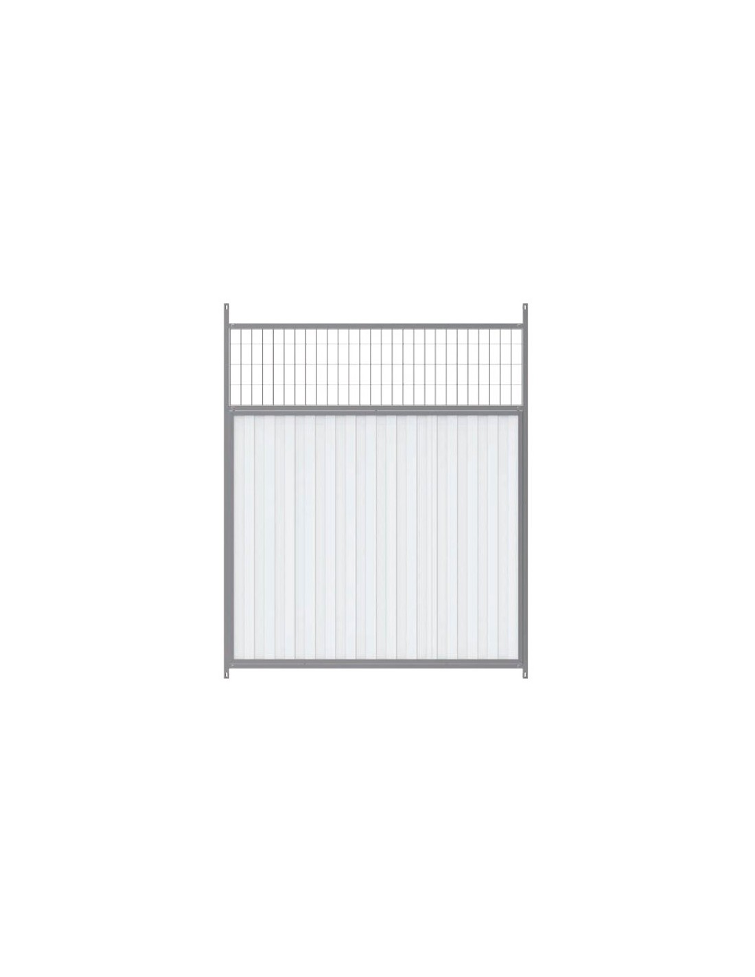 Lateral Mixto con Panel Sandwich para Box de perros o instalaciones caninas. Perfil con estructura de acero galvanizado de alta resistencia al exterior, malla metálica y panel sándwich que ofrece aislamiento térmico, visual y sonoro. Es adecuado para perros de todos los tamaños y razas. Especialmente diseñado para ofrecer seguridad y confort a tus perros.