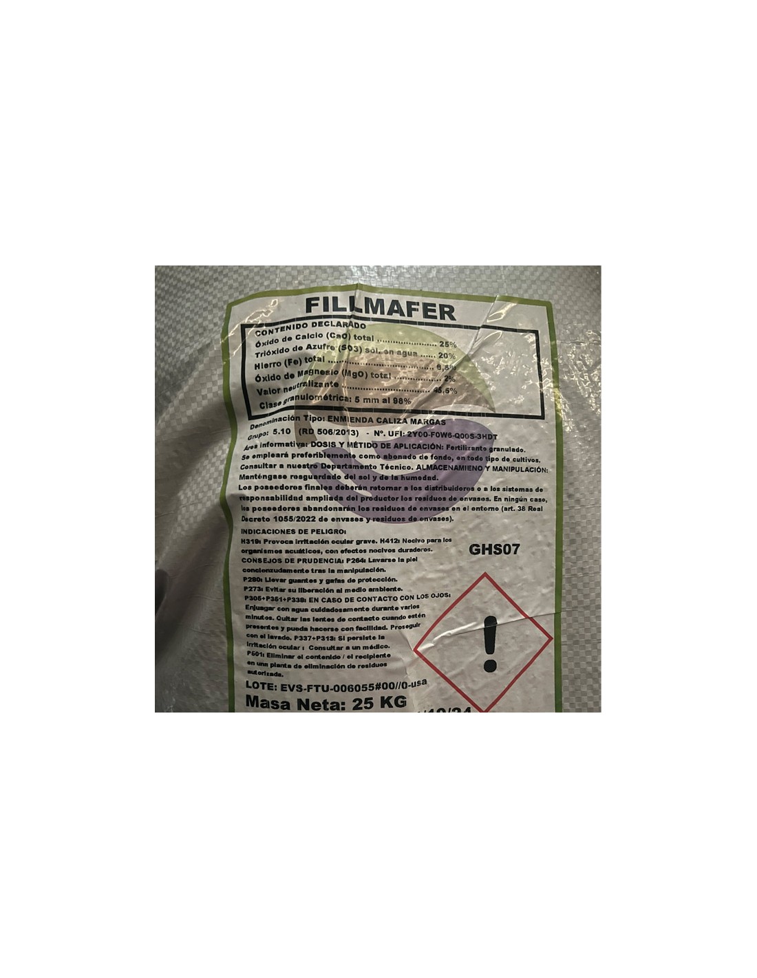 Composición: Hierro soluble en agua 12% , óxido de Magnesio (mg) total 5%, oxido de magnesio soluble en agua 3%, trióxido de azufre (SO3) sol. en agua 35%