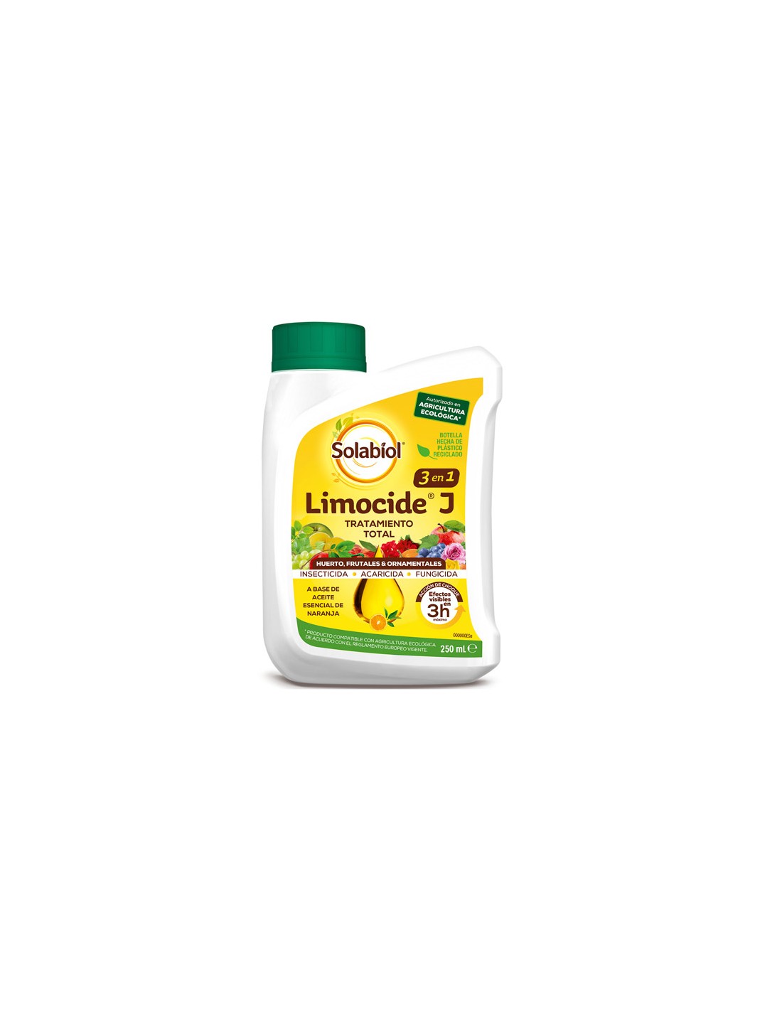 Limocide J Triple Acción es un insecticida, acaricida y fungicida ecológico de la marca Solabiol indicado para el tratamiento de enfermedades en cultivos hortícolas, frutales y ornamentales formulado a base de aceite esencial de naranja. Actúa por contacto provocando la deshidratación de la cutícula en mosca blanca, trips, cicadélidos, ácaros y en hongos.