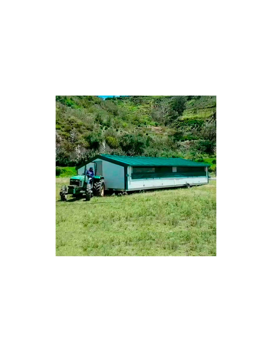 El corral móvil con panel sándwich de 60 m² es una solución completa y profesional para explotaciones avícolas camperas que buscan flexibilidad, bienestar animal y la máxima durabilidad. Diseñado para alojar hasta 540 gallinas ponedoras y otras aves, este módulo portable combina estructura galvanizada con cubierta, laterales y frontis de panel sándwich que proporcionan una alta resistencia a las inclemencias del tiempo al mismo tiempo que resulta ligero para su movilidad.