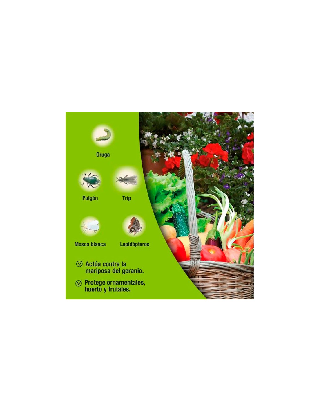 Insecticida contra la mariposa del geranio en macetas y jardines, cultivos hortícolas o frutales.