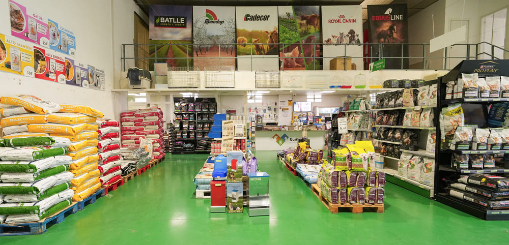 En lo que a los piensos se refiere Comercial Guiralsa es distribuidor oficial en Huesca de la marca aragonesa Agroveco. Agroveco cuenta con más de 50 años de experiencia en el sector de la alimentación animal y es un referente en cuanto a calidad y seguridad, fabricando pienso tanto para la ganadería doméstica (pollos, gallinas, conejos,…) como para explotaciones ganaderas extensivas de ovino y vacuno en un amplio surtido de formatos (10, 25, 40 kg o granel). También todo tipo de materias primas (maíz, trigo, cebada, avena, salvado, soja, …) y de correctores y leches maternizadas. Debido a las nuevas demandas también disponemos de pienso ecológico certificado de la marca Goimar, y productos no transgénicos. Además tenemos la más amplia gama de piensos para perros y gatos, de las mejores marcas del mercado, como son REX, PURINA, TASTE OF WILD, ROYAL CANIN, CRUNCHY, DEXTER… Piensos especiales en función de la raza o de la patología del animal, dietas para cubrir las necesidades de cada una de nuestras mascotas. También disponemos de todo tipo de surtido para pajarería, pequeños roedores y otros animales. Por la particularidad y delicadeza de los caballos, también disponemos de un pienso especial para ellos, marca EQUUSLINE, con un amplio surtido de fórmulas. Cada uno de estos piensos está diseñado concretamente para cada tipo de caballo dependiendo de la actividad que desempeña, con los mejores ingredientes que le aportan los nutrientes necesarios para su actividad física.