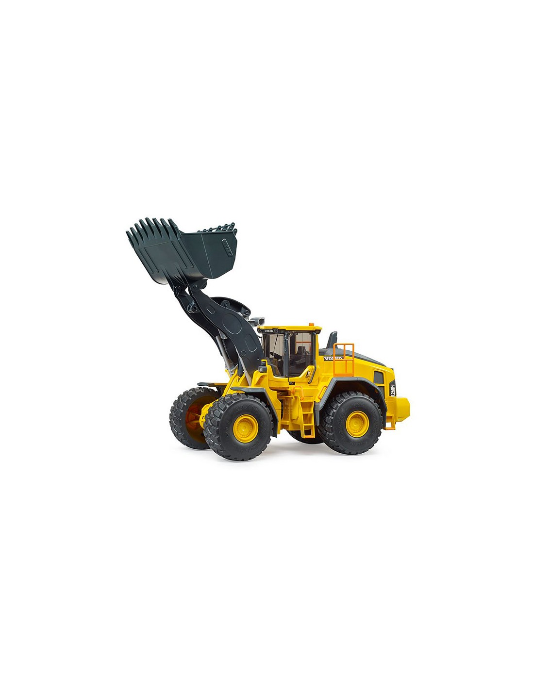 Excavadora de juguete Volvo L260H de Bruder con brazo extensible, pala cargadora basculante, cabina con interior accesible para las figuras Bworld, apertura de puertas y capó para niños y coleccionistas de maquinaria de construcción a escala. ¡La diversión y las horas de juego creativo están aseguradas con la nueva cargadora Volvo L260 de Bruder!
