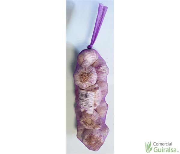 Ajo morado temprano que sirve tanto para su cultivo en el huerto como para comer en la mesa. Bolsas de 15 cabezas de ajo morado. Origen: La Mancha (España). Calibre: 50/60.